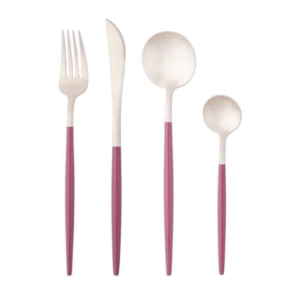 Faqueiro 24pc aço inox kyoto champanhe/nude--- matéria prima: aço inox / forno: não / fogão: não / lava louças: não / micro-ondas: não ---- cuidados e limpeza: caso seja necessário, lavar com detergente neutro, esponja macia e secar imediatamente. Não colocar em máquina de lavar. Não colocar no microondas.
